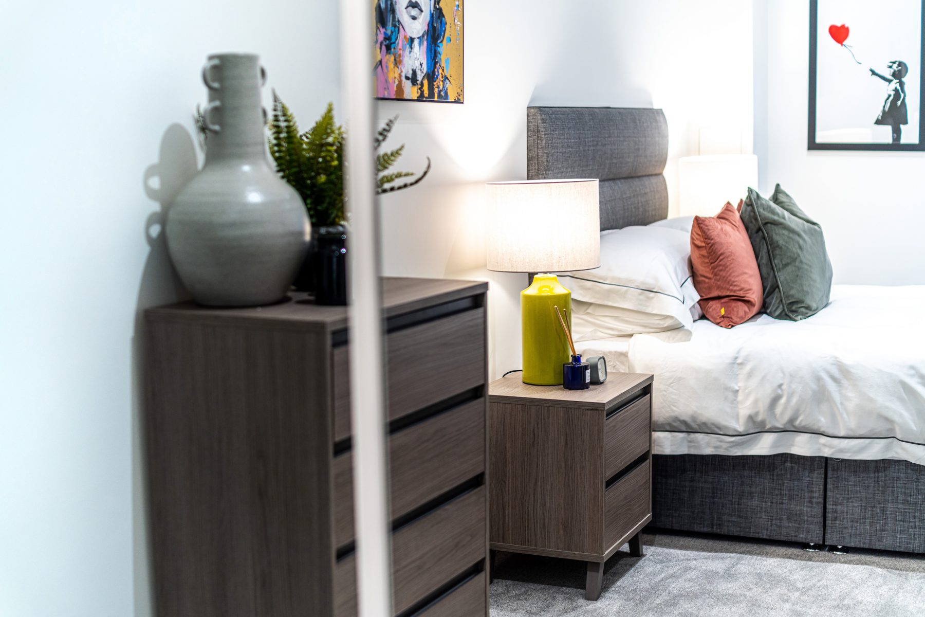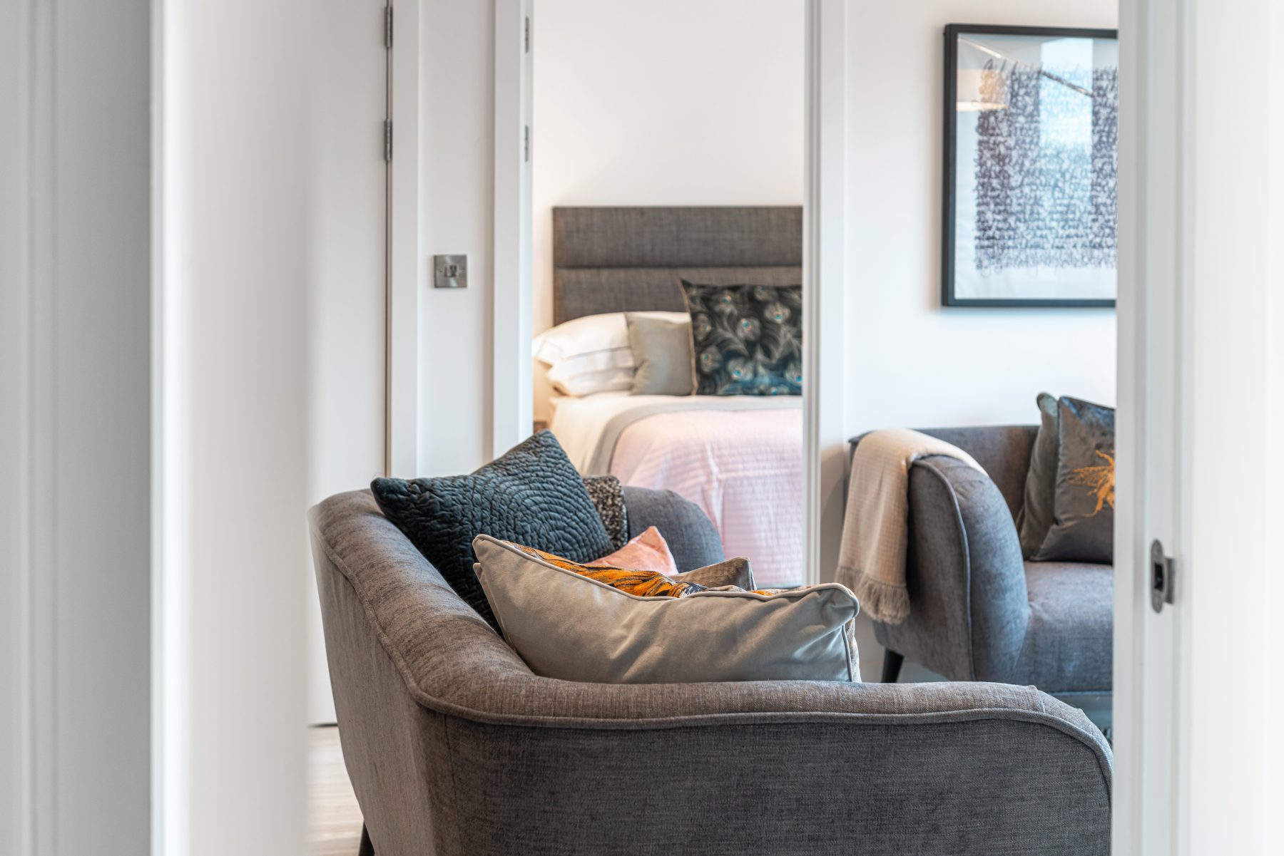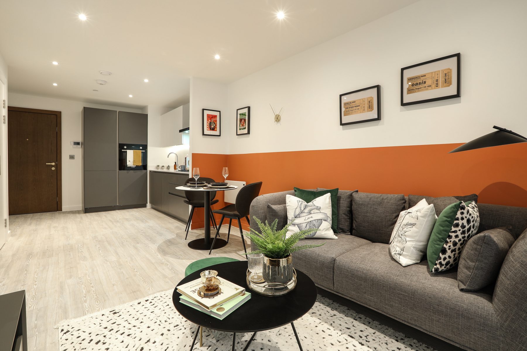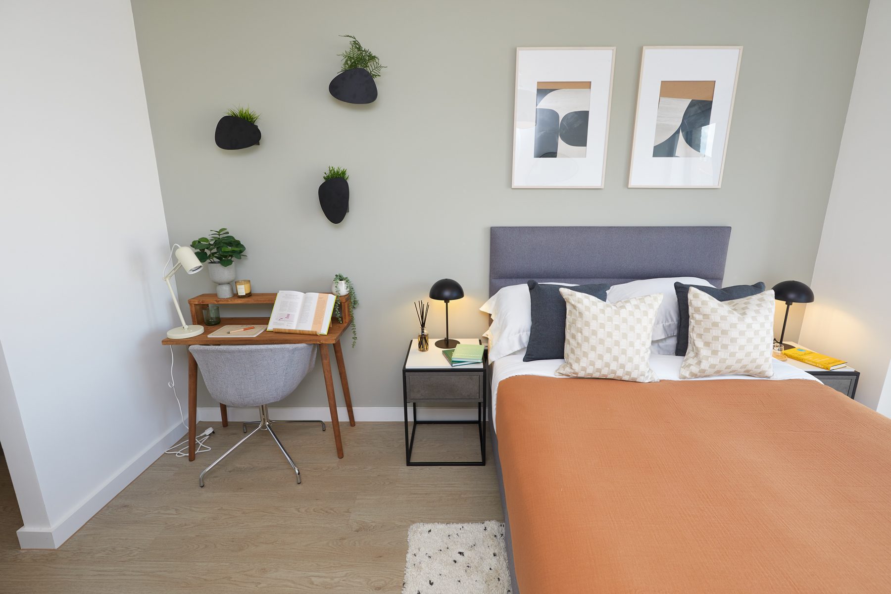 Our brief was to reflect key elements of the brand in the design of the show apartments, which we achieved successfully using colour and artworks. As with all our schemes, we selected robust furniture pieces designed to last but with comfort for residents being at the top of the list.