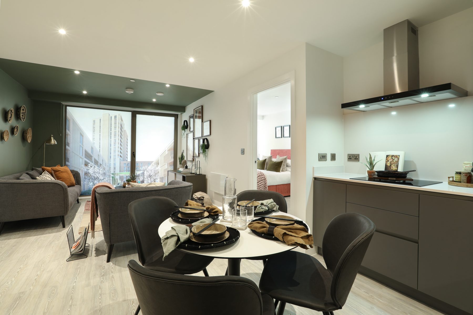 The Fika designed show apartment interiors have been created to reflect two main themes for this project. The first suggests a querky, creative, youthful vibe associated with Peckham, whilst our second apartment theme shows a more sophisticated, grown up approach to interior design.